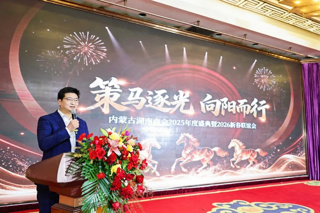 为凝聚湘商力量,共绘发展蓝图,内蒙古湖南商会“策马逐光 向阳而行”2025年度盛典暨2026年新春联谊会在内蒙古饭店盛大举行。两地主管部门领导、湘商乡贤代表、六十多家兄弟商协会会长及秘书长齐聚一堂,共叙乡情、共商发展,充分彰显了湘商扎根内蒙古、情系家乡魂的深厚情怀,向每一位砥砺奋进的湖南人致以崇高敬意。