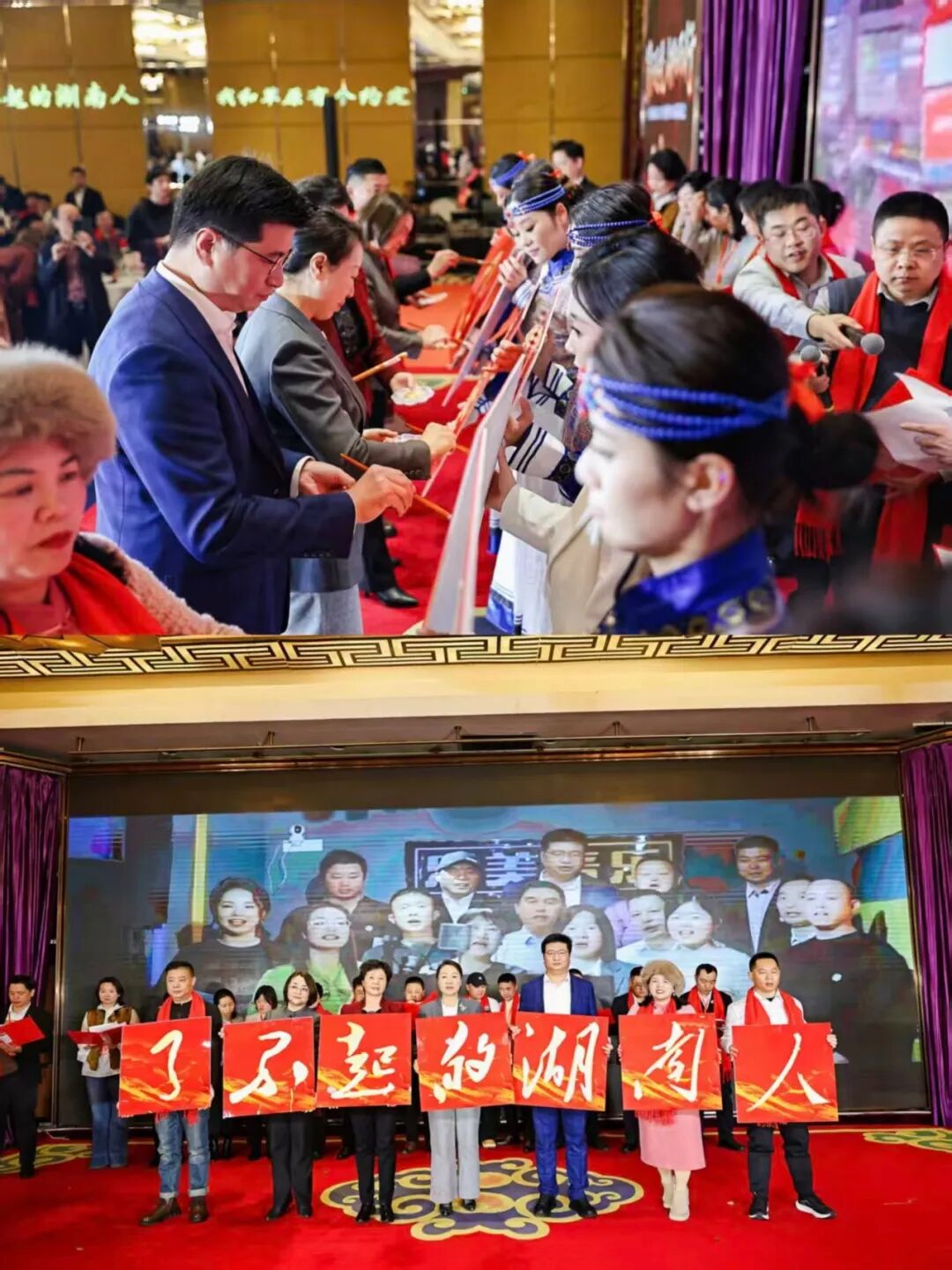 晚宴环节,湘韵与草原风情完美交融。《万马奔腾》《白马》《敖包相会》等节目奏响了草原的豪情壮志,《小背篓》《浏阳河》等节目唤起了湖湘的悠悠乡情。多轮抽奖与芙蓉王专属互动环节将现场氛围推向高潮,欢声笑语回荡在会场的每一个角落。全体理事、副会长登台合唱《湘商之歌》,为本次盛典画上了圆满的句号。